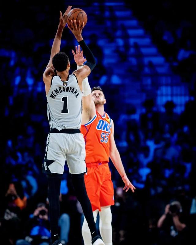在大部分的比赛里,雷霆就会像这样温水煮青蛙,一步步把对手拖死。但今天,他们遇上了文班亚马。第二节开始,文班亚马站在场上的那一刻开始,比赛的形势迅速就不一样了。